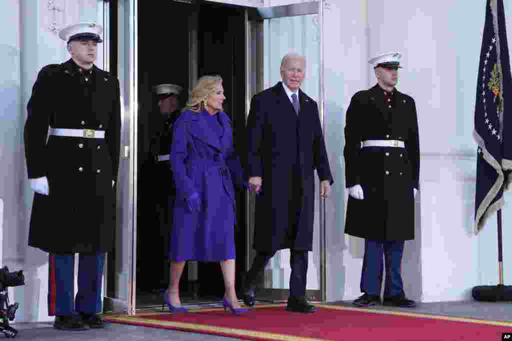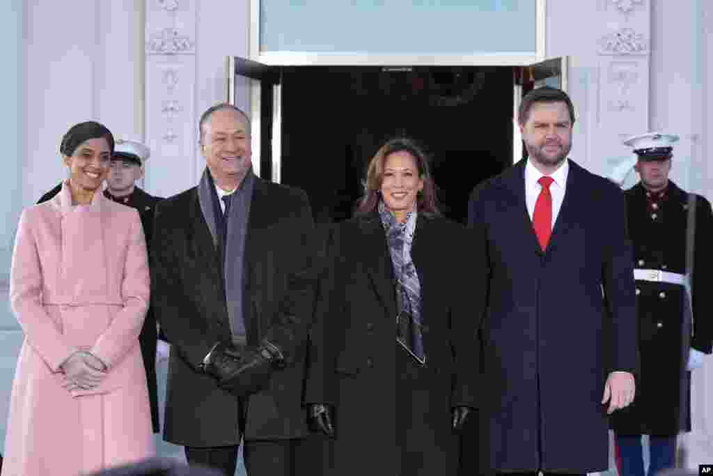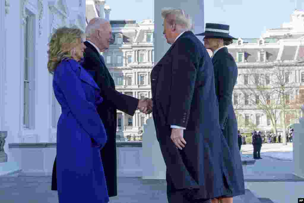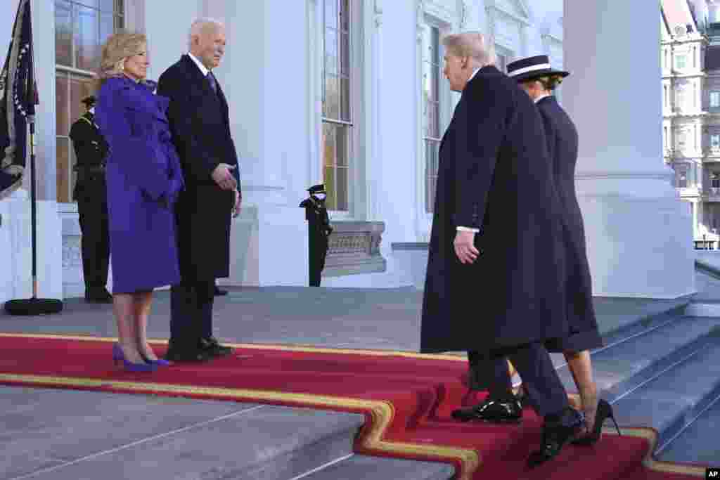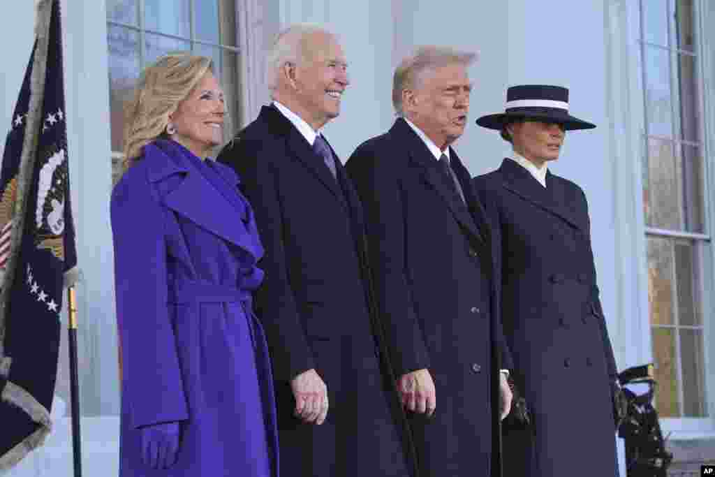 جو بایدن، رئیس جمهوری آمریکا و جیل بایدن، بانوی اول به دونالد ترامپ، رئیس جمهوری منتخب و ملانیا ترامپ، بانوی اول آینده خوشامد گفتند. کامالا هریس، معاون رئیس جمهوری و همسرش نیز به استقبال جی دی ونس، معاون رئیس جمهوری آینده و همسرش رفتند.