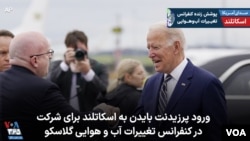 🔺 هواپیمای رئیس جمهوری آمریکا صبح دوشنبه از رم به اسکاتلند پرواز کرد و آقای بایدن ساعاتی پیش وارد شهر گلاسکو شد. این نخستین حضور پرزیدنت بایدن در نشست تغییرات آب و هوایی بعد از بازگرداندن ایالات متحده به توافق تغییرات اقلیمی پاریس است. دونالد ترامپ، آمریکا را از این توافق خارج کرده بود.