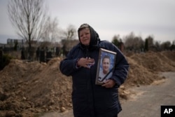 اوکراین میگوید که این افراد در جریان اشغال این منطقه توسط نیروهای روسی کشته شدند.