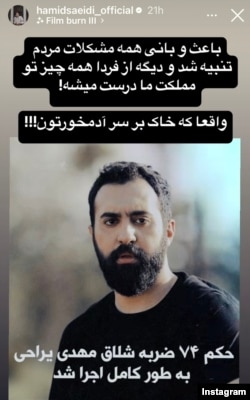 حمید سعیدی، نوازنده و آهنگساز، با انتشار استوری در اینستاگرام، تصویری از مهدی یراحی را به اشتراک گذاشت و نوشت: «باعث و بانی همه مشکلات مردم تنبیه شد و دیگه از فردا همه چیز تو مملکت ما درست میشه، واقعاً که خاک بر سر آدم‌خوارتون.»