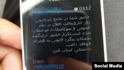 در پی اعتراضات گسترده در شهرهای مختلف ایران به گرانی بنزین، گزارشها حاکی از ارسال پیامک تهدیدآمیز نهادهای قضایی و امنیتی به شهروندان، دست کم در دو استان، مبنی بر خودداری از حضور در تجمعها است.