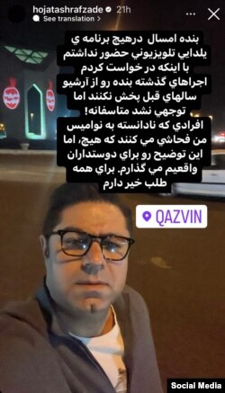 یکی از این هنرمندان حجت اشرفزاده بود که در حساب کاربری خود با عنوان این مطلب از صدا و سیما انتقاد کرد.