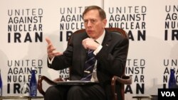 آقای پترائوس این سخنان را در نشست نهاد «اتحاد علیه ایران اتمی» بیان کرد. این گروه یکی از لابی قدرتمندمخالف برجام است که در نیویورک روز سه شنبه همزمان با آغاز نشست سالانه مجمع عمومی سازمان ملل این نشست را با حضور گروهی از سیاستمداران کنونی و پیشین آمریکایی و بین المللی برگزار کرد.