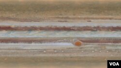 در این ویدیو، که ترکیبی است از عکسهای گرفته شده توسط تلسکوپ هابل، نقطه قرمز رنگ معروف مشتری که سه برابر اندازه کره زمین است، کمی کوچکتر شده.