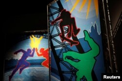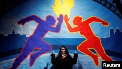 این اثر هنری ورزشکاران را در رنگهای روشن، آماده برای مسابقه یا در میانه رقابت، پای برج ایفل نشان میدهد.