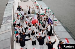اما نمایندگان کاروان ورزشی جمهوری اسلامی ایران در مراسم رژه ، تنها با ۱۶ ورزشکار، ۶ عضو کادر فنی و مربیان و ۹ همراه کمیته ملی المپیک جمهوری اسلامی، در کل با ۳۱ نفر بر روی قایق در کنار اندونزی حاضر شدند.