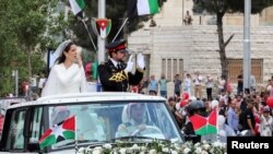 اردنی ها در حالی که کاروان آنها مسیری ده کیلومتری را در خیابانهای شهر تحت تدابیر شدید امنیتی طی می کند، پادشاه و ملکه آینده خود را تماشا کردند.