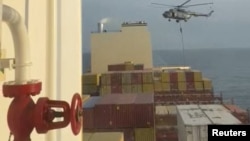 به گزارش خبرگزاری دولتی ایرنا، سپاه پاسداران روز شنبه یک کشتی باری «مرتبط با اسرائیل» را در تنگه هرمز توقیف کرد. سخنگوی وزارت امور خارجه ایالات متحده در گفتگو با بخش فارسی صدای آمریکا این اقدام سپاه پاسداران را «دزدی دریایی» نامیده و خواستار آزادی کشتی و همه خدمه آن شده است.