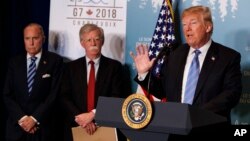 پرزیدنت ترامپ شنبه ۱۹ خرداد به خبرنگاران گفت که گرچه کشورهای گروه هفت، قدرتهای صنعتی جهان، بر مهار برنامه اتمی ایران تاکید گذاشتهاند، اما اگر لازم باشد آمریکا بدون آنها هم به این هدف خواهد رسید.