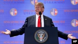 پرزیدنت دونالد ترامپ در کنفرانس خبری پس از دیدار تاریخیاش با کیم جونگ اون، رهبر کره شمالی، این روز را آغاز فصلی جدید در مناسبات دو کشور خواند و دستاورد دیدار با رهبر کره شمالی را بسیار بهتر از توافق اتمی با ایران دانست.