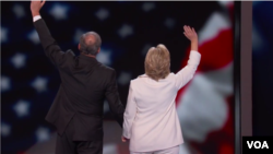 با پایان سخنرانی خانم کلینتون، تیم کین به او پیوست. آقای کین در صورت پیروزی خانم کلینتون معاون او خواهد شد.