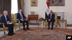 کاخ سفید می گوید در مصر، کوشنر، داماد دونالد ترامپ رئیس جمهوری آمریکا، و جیسون گرینبلات، فرستاده کاخ سفید در امور صلح خاورمیانه با عبدالفتاح الیسیسی، رئیس جمهوری مصر درباره همکاری های فزاینده میان قاهره و واشنگتن و لزوم تسهیل کمک های انسانی به غزه صحبت کردند.