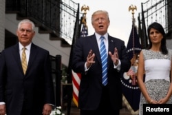 رکس تیلرسون، وزیر خارجه آمریکا نیز به همراه نیکی هیلی نماینده دائم آمریکا در سازمان ملل، در پاسخ به خبرنگاران بار دیگر بر یافتن راه حلی دیپلماتیک اشاره کرد.