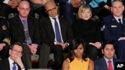 در سخنرانی امشب، کنار بانوی اول، یک صندلی خالی قرار داشت که بطور نمادین به قربانیان کشتار با اسلحه در آمریکا اختصاص داشت.